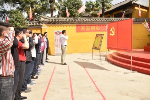 参观前,校党委书记王翠岗带领参加活动的党员在纪念馆前举行了重温入党誓词活动,面对鲜红的党旗,全体党员庄严宣誓。