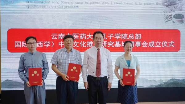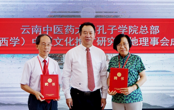 云中讯(新闻中心)7月18日,由我校和中国中医科学院中国医史文献研究所共同主办的第七届中医西学国际论坛在呈贡校区举行。来自中国、美国、英国等国家和地区的中医药、西方草药专家齐聚一堂,共话中西西学研究。校党委副书记、校长熊磊主持论坛开幕式。开幕式上,举行了云南中医药大学孔子学院总部国际(西学)中医文化推广研究基地理事会成立仪式,我校党委书记王翠岗当选首届理事长,并为理事会成员颁发聘书。