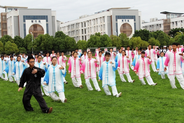 2011年起,我校在公共体育课程中设置了《大学体育2(太极拳)》课程开展教学。为了让学生熟练掌握太极拳的动作要领,相互切磋交流,弘扬传统保健体育和中华优秀传统文化,在教学实践中,根据太极拳教学进度,由体育部组织大一学生在一年级的早操活动中开展练习,以此持续巩固教学内容。9年来,学校坚持每年组织开展学生太极拳比赛,增强了学生参与太极拳健身运动的热情,达到了以赛促教,以赛促学的效果,并逐渐形成特色亮点,对于弘扬传统体育保健体育起到了很好的引导作用。