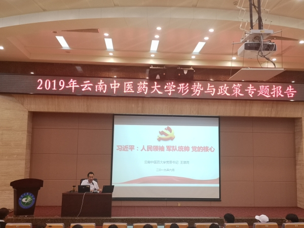云中讯(通讯员 苗丽)6月27日晚,校党委书记王翠岗在呈贡校区翰墨楼一楼报告厅为信息学院、中药学院和基础医学院的260余名学生讲授形势与政策课,作题为《习近平:人民领袖 军队统帅 党的核心》的专题讲座。