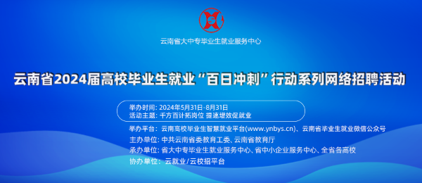 为学习贯彻党的二十大精神,落实党中央国务院关于做好高校毕业生就业工作的决策部署和省委、省政府工作要求,抢抓就业工作关键期,全力促进高校毕业生高质量充分就业,省教育厅决定举办云南省2024届高校毕业生就业“百日冲刺”行动系列网络招聘活动。