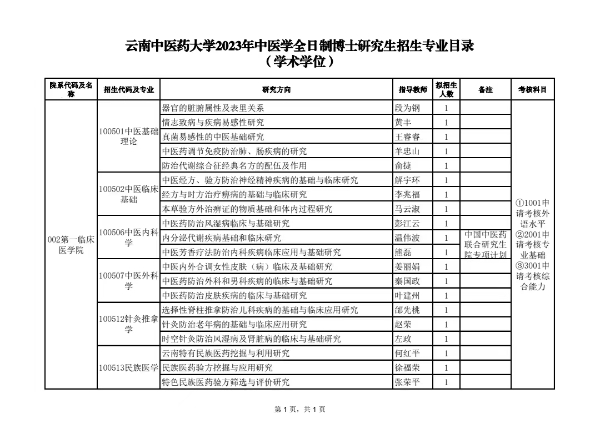 2023年我校招收全日制博士研究生计划为20人,其中普通计划18人,中国中医药联合研究生院专项计划2人。各招生专业(研究方向)拟招生人数见《云南中医药大学2023年全日制博士研究生招生专业目录》。