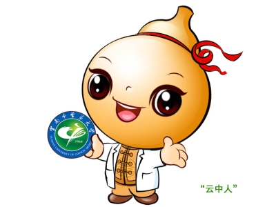 设计说明:图形以中医药典故“悬壶济世”为基础创作,取葫芦、医生、红飘带、校徽和可爱的福娃元素演绎造型。蕴含崇德至善、大医精诚、悬壶济世的深意。福娃身穿白大褂,右手持校徽,左手竖起拇指点赞云中,头上红色丝带是60周年数字的艺术化,福娃美誉“云中人”。吉祥物整体构图色彩明快,和蔼可亲,热情奔放,富有美感和视觉冲击力及积极进取的精神状态,是“崇德和合,博学敦行”校训精神的动感表达。