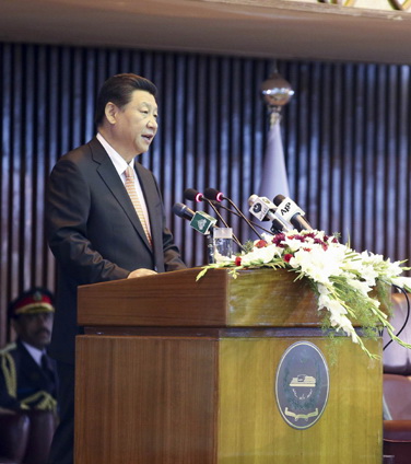 学习路上按:21日,国家主席习近平在巴基斯坦议会发表题为《构建中巴命运共同体 开辟合作共赢新征程》的重要演讲。期间,议员们50多次拍击桌子和鼓掌,对习近平的演讲表示认同和支持。这一幕,中文里有个形象的词语来描述,即“击节叫好”。将近5千字的演讲,就赢得了巴铁50次“击节叫好”。习主席说了哪些精彩话语?学习路上为您摘录。