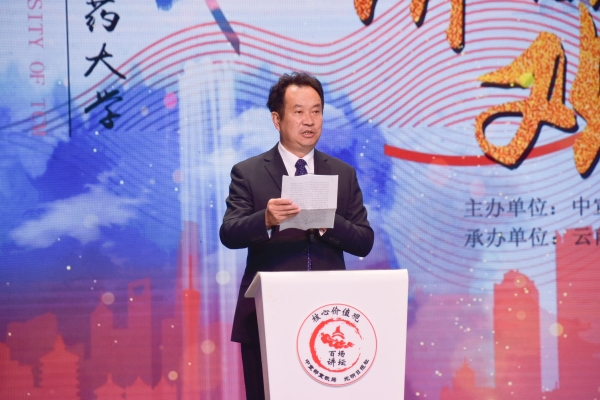 云中讯(新闻中心)12月21日上午,由中宣部宣教局、光明日报社共同主办,我校与中共昆明市呈贡区委、光明网承办的“核心价值观百场讲坛”工程第82场活动在我校呈贡校区兰茂堂举行。邀请教育部社科中心主任、教育部习近平新时代中国特色社会主义思想研究中心副主任兼秘书长王炳林教授,作题为《走中国特色的富强之路》专题讲座。光明日报副总编辑沈卫星主持讲坛。