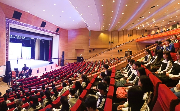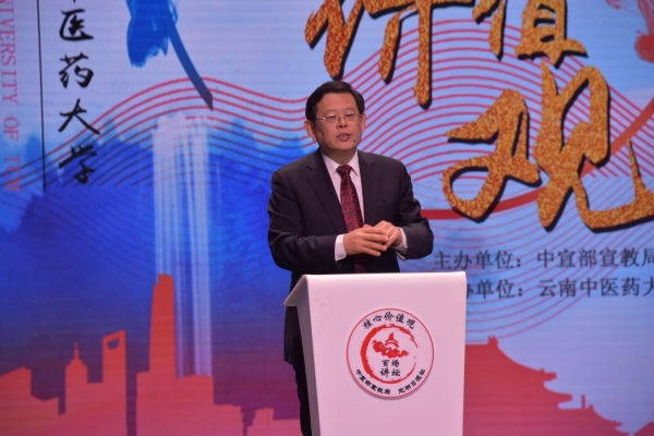 现场座无虚席,气氛热烈,掌声不断。这是中宣部宣教局、光明日报社在云南高校举办的首场大型直播讲坛,也是我校更名云南中医药大学,欢庆改革开放40周年,弘扬主旋律的专题活动。省委宣传部、省委高校工委领导,呈贡区委宣传部领导,在昆高校宣传部代表,我校党政领导、教职医务员工、学生代表,呈贡区各单位、各街道办事处领导与党员代表,区各级文明学校代表等1200余人聆听了主题报告。