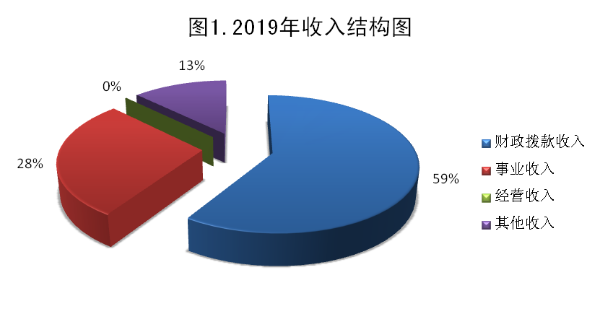 2019年度学校总收入45,256.28万元,较上年45,893.35万元减少637.07万元,减幅为1.39%。其中,财政拨款收入26,764.65万元,占总收入的59.14%;事业收入12,760.37万元,占总收入的28.20%;其他收入5,731.26万元,占总收入的12.66%。收入较上年变动的主要因素:一是我校2018年度获得中央基建拨款,2019年无该类拨款;二是学校规范科研项目管理,积极组织项目申报,科研项目立项逐年增长,科研事业收入相应增加;三是《政府会计制度》改革后,债务预算收入纳入收入核算。