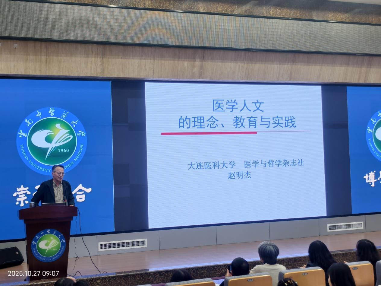 云中讯(通讯员 蒋涛)2025年10月27日上午,云南中医药大学翰墨讲堂第三讲如期举行。本次讲座以“医学人文研究的视角与创新”为主题,由学校图书馆主办,中医西学研究所、世界传统医学研究院承办,特邀教授、主任医师、博士生导师、《医学与哲学》杂志常务主编赵明杰担任主讲嘉宾,160多名师生齐聚翰墨楼一楼报告厅,共同聆听这场兼具理论深度与实践价值的学术分享。