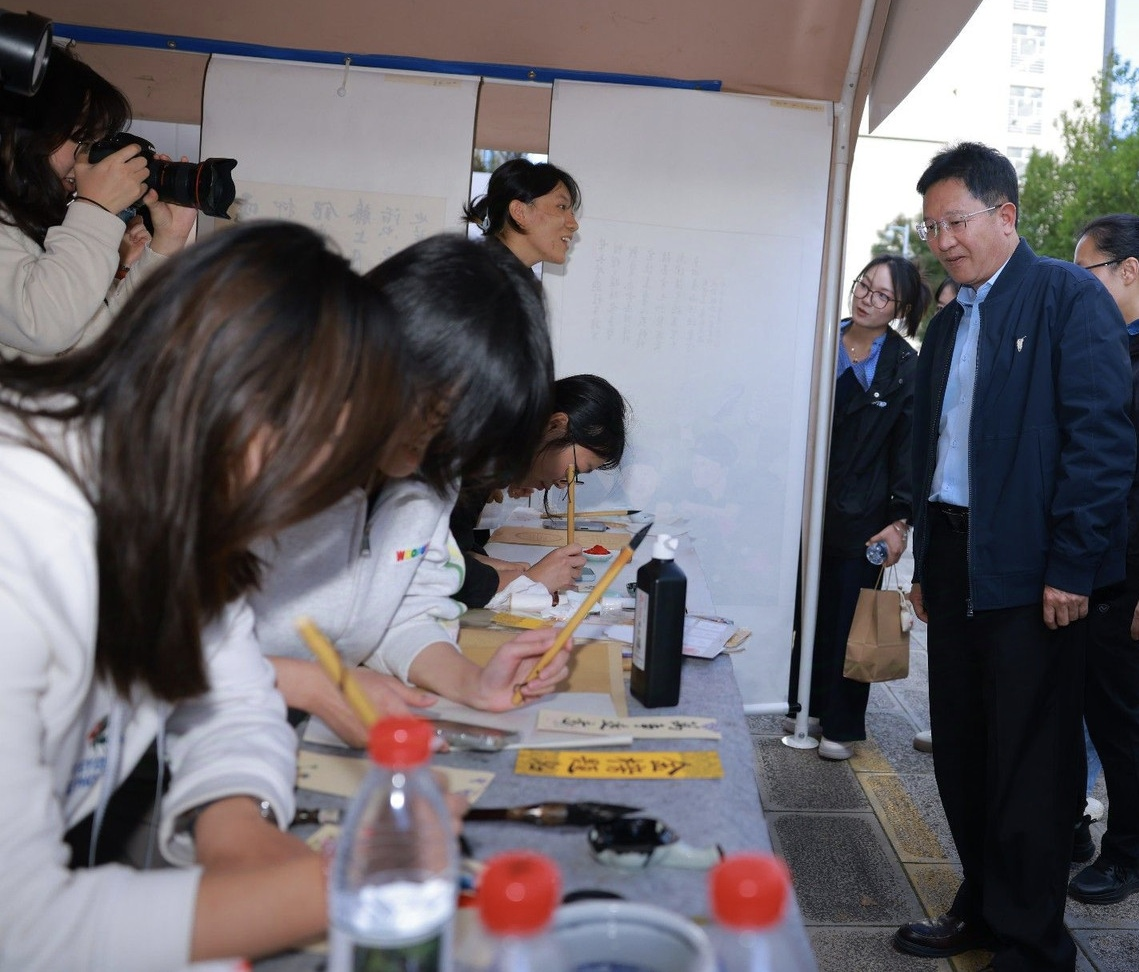 云中讯(第一临床医学院)由学生处、第一临床医学院联合举办的“Seasons in佩衡·云中四时”第二届中医文化市集活动于11月14日在呈贡校区佩衡书院举行,活动旨在打造校园文化品牌,弘扬传统节气文化,贴合师生健康与成长需求、深化党建与专业双融双促。校党委书记邱勇、党委副书记杨鹤清到现场指导,宣传部、校团委、学生处、保卫处等相关职能部门负责人以及全校近5000名师生参加活动。活动通过沉浸式体验、互动式实践、艺术化呈现等方式,将节气养生、中医智慧、红色党建与非遗传承深度融合,为全校师生献上了一场兼具知识性、趣味性与思想性的文化活动。