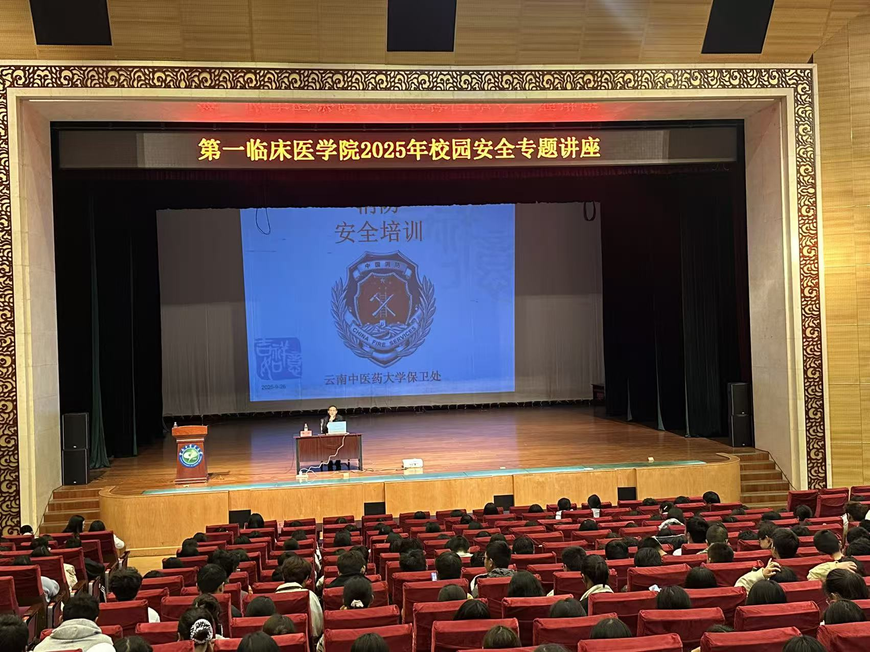 云中讯 (通讯员 张鲁婷 季柯含)9月26日下午,第一临床医学院在兰茂堂组织开展校园安全专题讲座。本次讲座聚焦新生校园生活核心安全需求,分设消防安全教育、反诈宣传及综合安全教育两大主题,为新生送上“安全知识大礼包”。学院2025级840名师生参加。