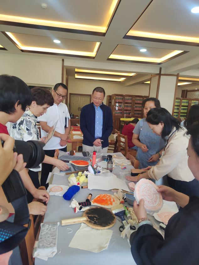 为丰富培训课程内容体系,9月25日开展了非遗拓印技艺体验活动,50余人参加。在专业老师指导下,学员们自主发挥,自由创作,以扇面、相框等为载体创作出独一无二的个性化拓印作品,亲身体验了非遗文化技艺的传承。当天适逢中国国家版本馆专家调研我校古籍数字化工作,专家们共同参与到拓印创作中来,给予了本期活动很高的肯定和鼓励。