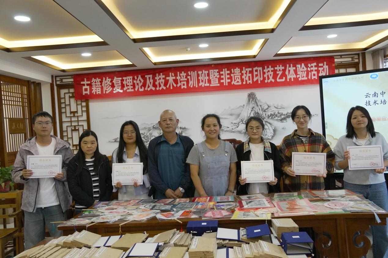 云中讯(图书馆)为切实推进古籍保护工作,加强古籍修复人才队伍建设,学校图书馆联合云南省古籍保护中心,于2025年9月22至26日在学校图书馆滇文轩古籍室举办第四期古籍修复理论及技术培训班暨非遗拓印技艺体验活动。培训班吸引了98位学员参训,包括学校师生以及昆明市、呈贡区档案馆的老师,其中51人顺利结业。