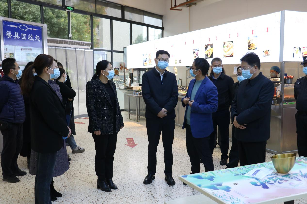会前,邱勇一行先后到学校各食堂实地调研了解后勤服务基础设施设备运行及食堂环境卫生等相关情况,检查了饮食服务部的相关晨检消杀等记录,并现场查看了洗消间、食品加工间等场所,强调要加强卫生安全管理,持续改进工作,给师生创造一个更加高雅、舒适的就餐环境,确保食品安全。