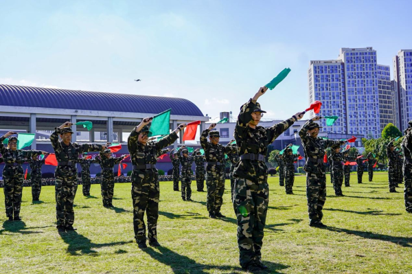 标兵就位,分列式开始。田径场上,军歌嘹亮,晨阳之下,旌旗飘扬。分列式进行曲在耳边回荡,营旗方阵依次走过主席台,他们队列整齐、步伐矫健、英姿飒爽……多日训练的汗水在此刻化作亮眼表现,充分展现了云中学子吃苦耐劳、越战越勇的坚毅品格,更展现了刚毅果敢的军人气质和斗志昂扬的精神风貌。
