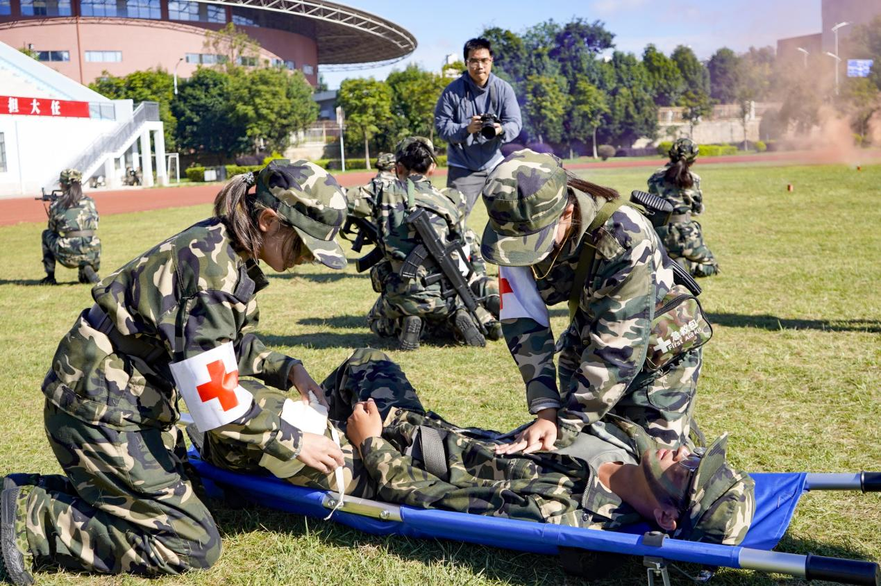 分列式后,刺杀操、战术综合演练、格斗擒拿等队列演示依次精彩呈现。刺杀操气势如虹、齐声口令响彻云际;战术综合演练展示了人质解救、应急救援、团体协作等技能,扣人心弦、临危受命、患难与共、温暖动人的场景纷纷呈现;格斗擒拿刚劲雄浑、威武霸气。精彩的展示赢得在场师生的阵阵掌声和欢呼声,更为本次的汇报大会画上了动人心弦的一笔。